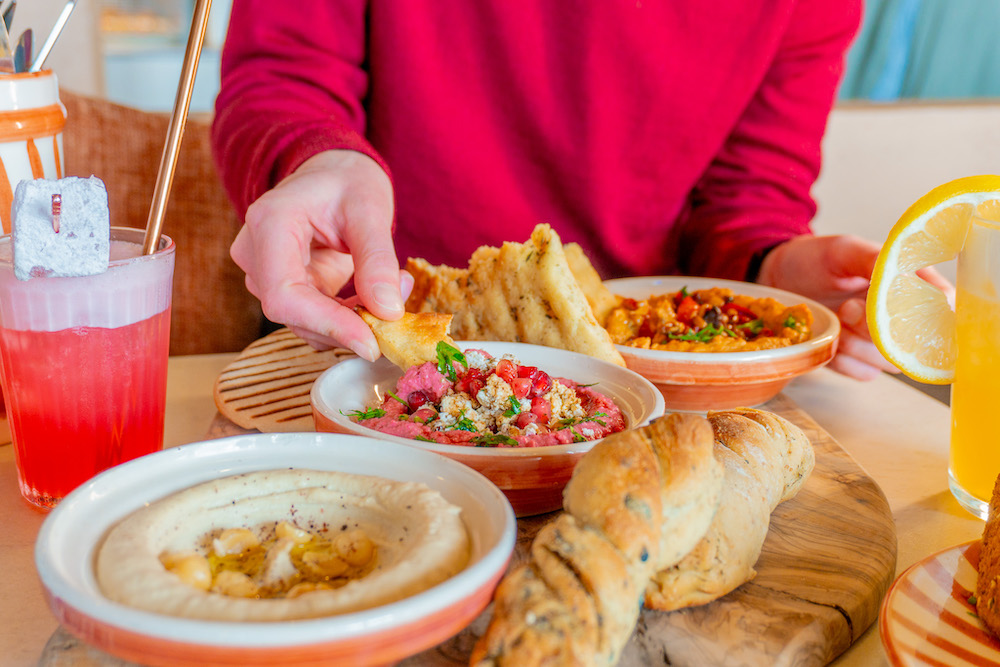 Le midi et le soir, la maison joue bien sûr toujours la carte du sur-le-pouce accessible. Assiettes de houmous garnies, mezze à composer, pains maison... pour un total qui dépasse rarement les 15€.